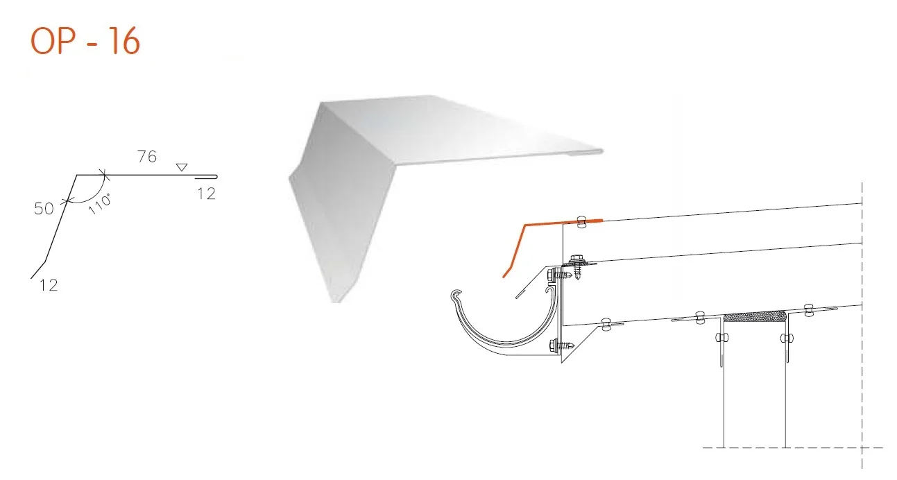 Material: Verzinkte StahlMaterialstärke: 0,5 mmBeschichtung: Standardpolyester 25µmLänge: Min: 2000 mm - Max: 5000 mm